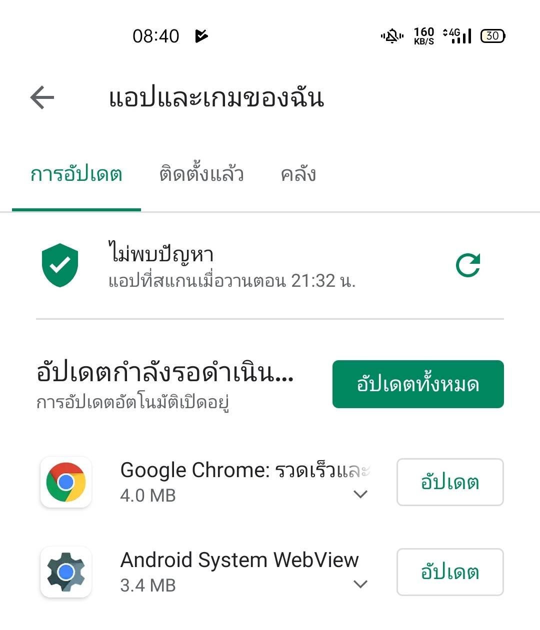 กลับมาถึงบ้านก็เจอปัญหาแรก Google Chrome อัพเดทไม่ได้ ก็ลองกด อัพเดททั้งหมด ดู อ่า... อัพเดทได้ละ ก็คิดว่าเรื่องเล็กน้อย ไม่ได้สนใจอะไร