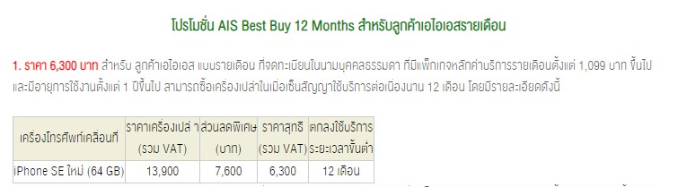 สอบถามโปร iphone se ของ AIS ครับ