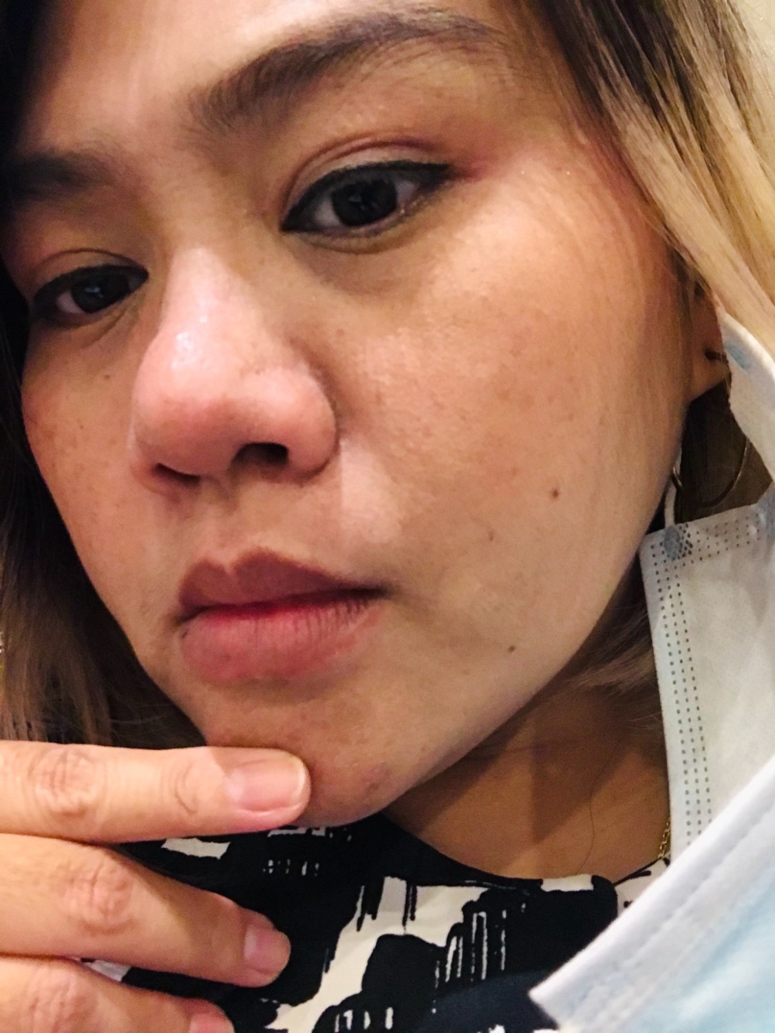และนี่ก็คือสภาพหน้าที่เวลาผ่านมาครึ่งวัน (หน้านี้คือเวลาประมาณห้าโมงเย็น) แล้วเราก็ไปนอนทำเลเซอร์หน้ามา 1 ชม.ถ้วน (คือตอนทำเลเซอร์เค้าจะเอาสำลีชุบน้ำมาปิดตาเราไว้ด้วยค่ะ)