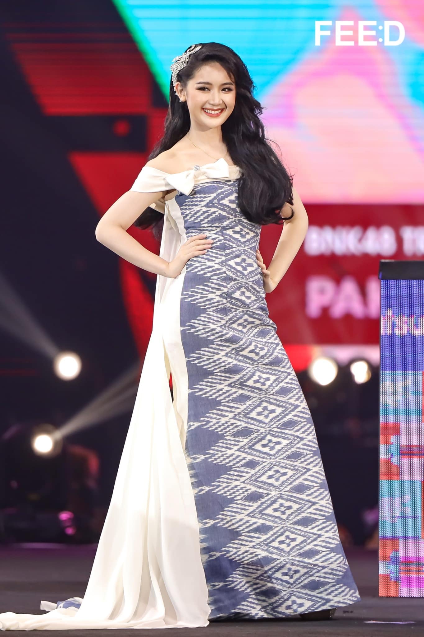 7. พาขวัญ BNK48 สาวสกลนคร ที่นำของดีบ้านตัวเองอย่างผ้าคราม มาเฉิดฉายเจิดจรัสบนรันเวย์จังเก้นครั้งนี้ แม้อาจจะไม่เล่นใหญ่จัดเต็มเหมือนคนอื่น ๆ แต่เสน่ห์บนรันเวย์ก็คงทำให้เหล่าโอตะชื่นชอบไม่แพ้กัน