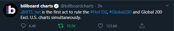 แถมยังเป็นศิลปินคนแรกในประวัติศาสตร์ที่สามารถ all kill Billboard HOT 100, Billboard Global 200, Billboard Global Excl. U.S. อีก