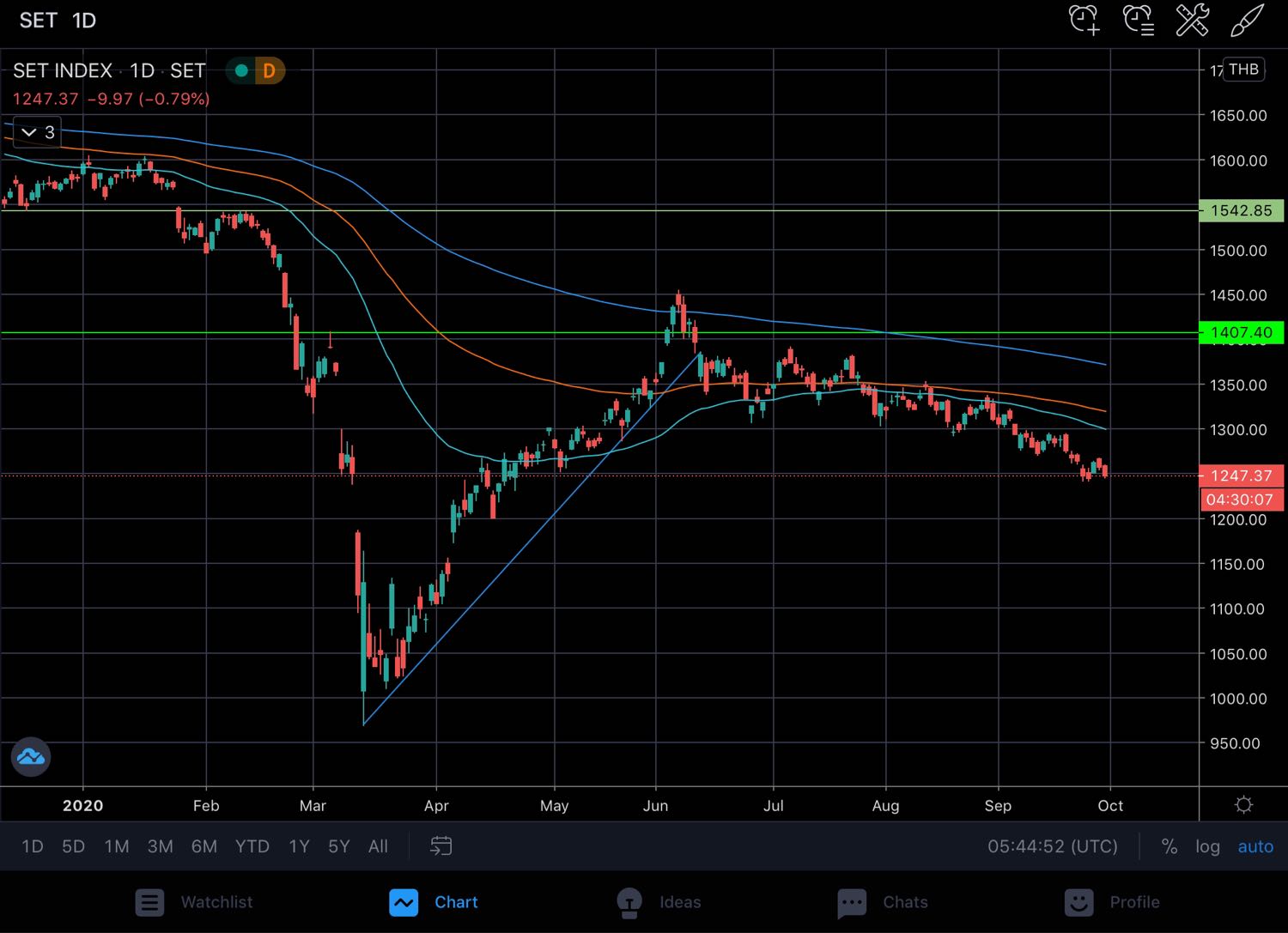 set 1549.74 YTD และ 1year return ติดลบแล้ว สูงกว่าจุดต่ำสุดในรอบปี (1546.51) แบบปริ่มน้ำ set50 1048.08