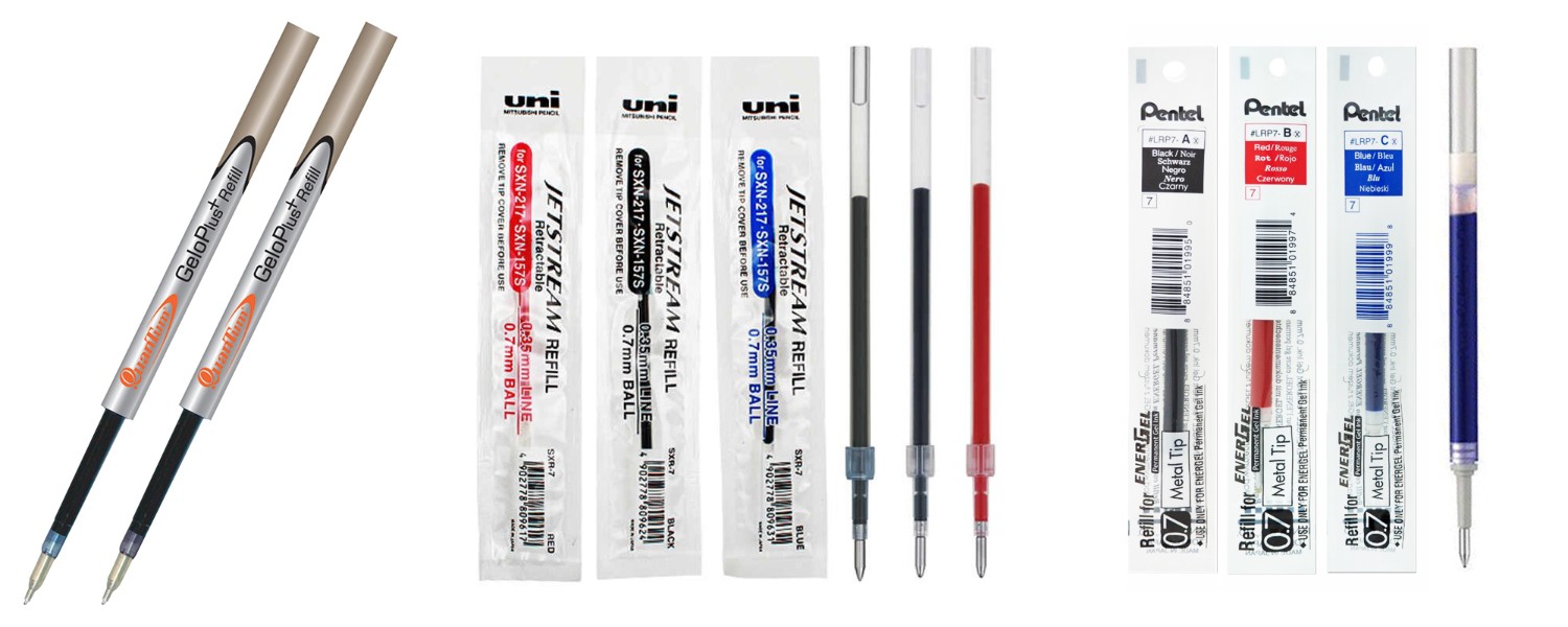 ไส้ปากกา 3 ชนิดนี้ขนาดเท่ากันไหม จะหาด้ามสวยๆใช้ค่ะ Geluloid Plus 0.7, Jetstream SXR-7 และ EnerGel LRP7