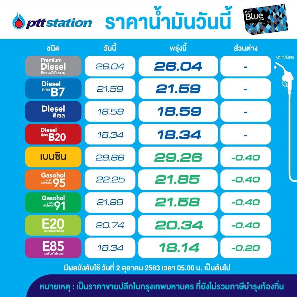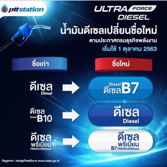 18.00 น. แจ้งข่าว 1 ตุลาคม 2563 น้ำมันเปลี่ยนชื่อตามนี้ค่ะ