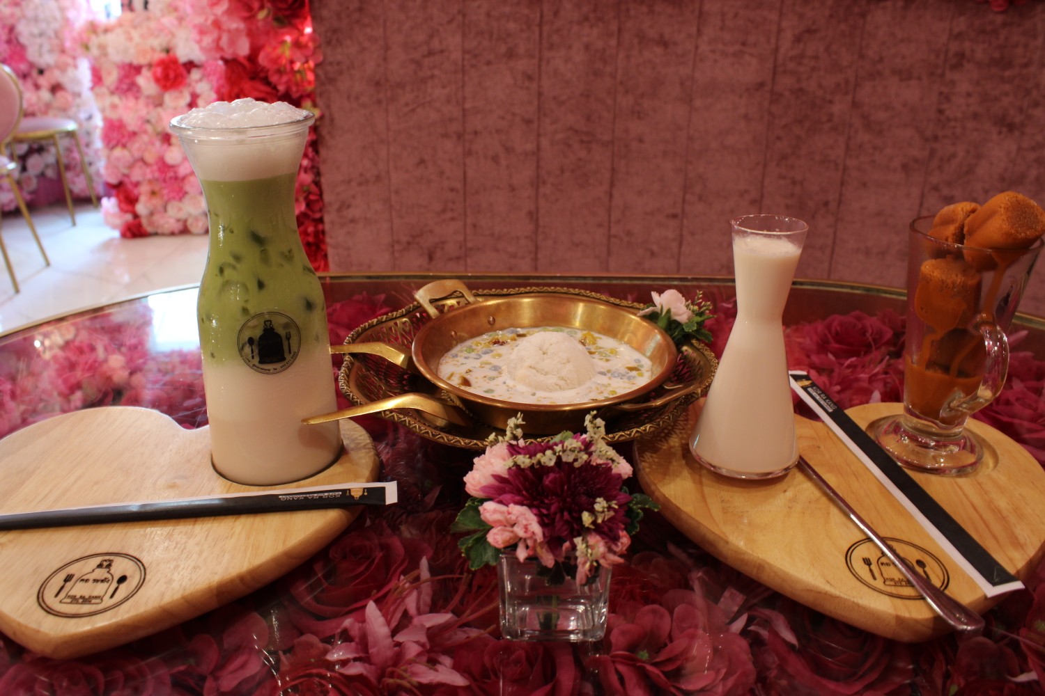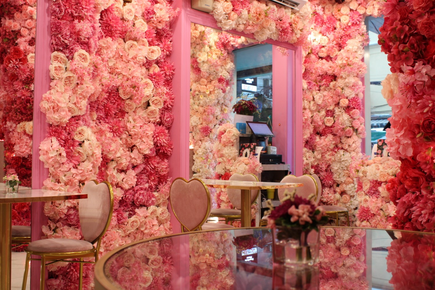 คอ ระฆัง เป็นคาเฟ่ดอกไม้ที่เต็มไปด้วยคาเฟ่ดอกไม้สีชมพูเต็มร้าน เป็นร้านที่ไม่ใหญ่มากมีที่นั่งประมาณ 8 โต๊ะ