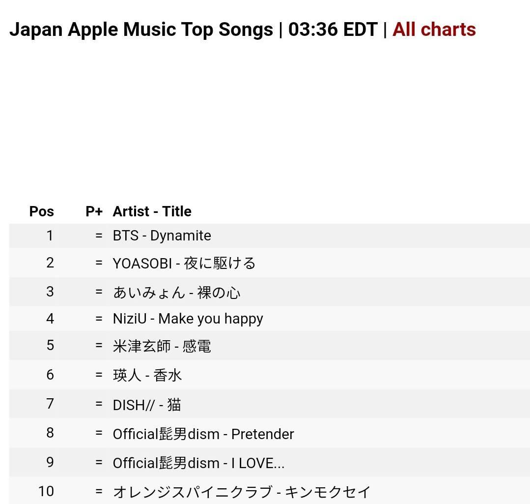 Dynamite has now spent 20 consecutive days at #1 on Apple Music Japan. 🇯🇵