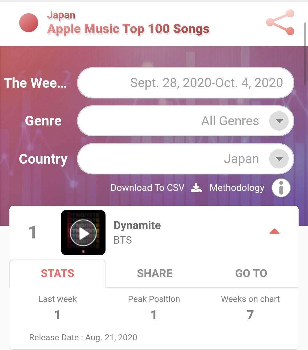 [BTS] 👑'Dynamite' ทำสถิติ #1 Apple Music Japan 🇯🇵 ต่อเนื่อง 20 วัน