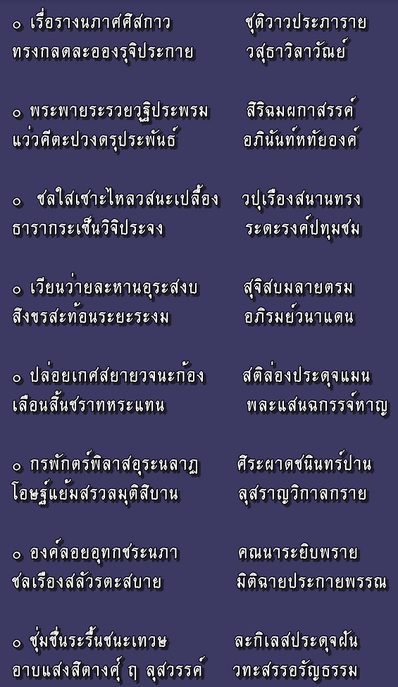 ถุงมือกวี ลำดับที่ 7 นี้ มาเป็น "วสันตดิลกฉันท์" เลยครับ ^^
