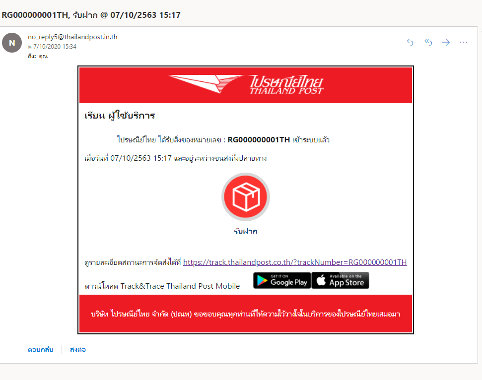 no_reply5@thailandpost.in.th อิเมล์นี้ เป็นของ ไปรษณีย์ไทยจริงไม๊ ?