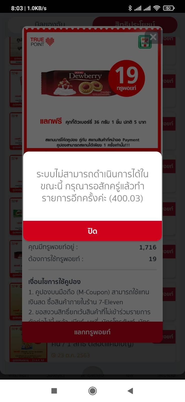 แลกดูหนังสิทธิ์เต็ม แลกของ 7/11 Errror เป็นมาหลายวันแล้ว