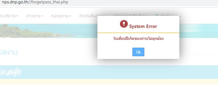 พอดีว่า เราลงทะเบียนไว้ปีที่แล้ว ใช้จองที่พักอุทยาน มาปีนี้ว่าจะจองไปเที่ยวหน่อย แต่ดันลืมทุกอย่างไปเลย พยายาม login ด้วยรหัสผ่านที่คิดว่าใช่อยู่นานก็ไม่ได้ (เรามั่นในรหัสที่จำไว้เพราะมี pattern ที่ใช้บ่อยนะ) แต่ก็เข้าไม่ได้ เข้าเมนูลืมรหัสผ่านมันให้กรอกทุกอย่างลงไป (ความง่ายคือ ได้ 5 เต็ม 10)