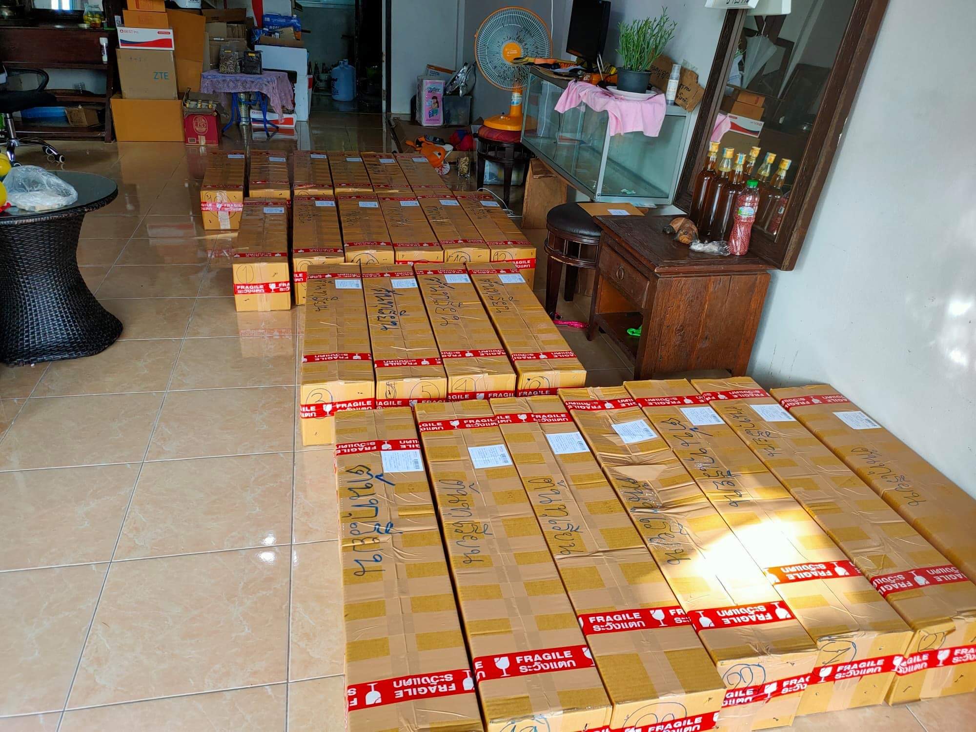 ด้านบนคือสภาพกล่องที่โดนเปลี่ยน เเละการจัดวางซึ่งทำให้ของด้านในเสียหายจำนวนมาก