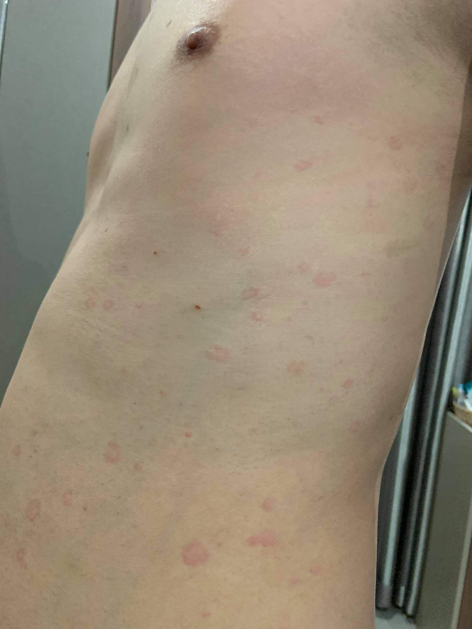 เป็นประมาณนี้ผมเป็นเมื่อปีแล้วไม่คัน ไม่เจ็บ ประมาณอาทิตย์นึงหายตอนนั้นผมลงไปเเถวจังหวัด ที่มีสารเคมีเยอะ ไม่รู้เกี่ยวหรือเปล่าจนตอนนี้ก็ยังไม่เป็นสสงสัยว่า มัน