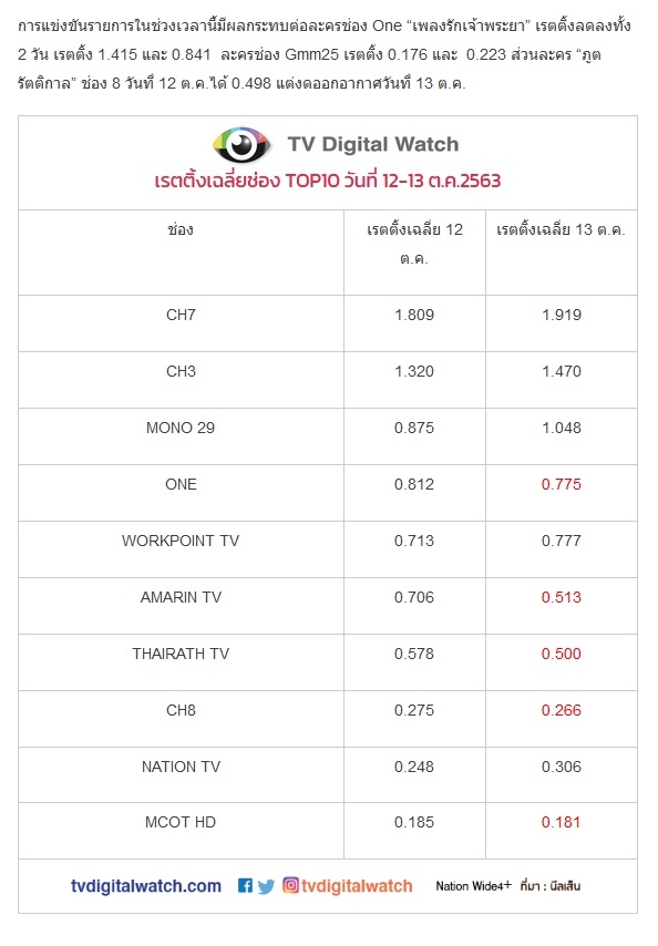 🔎 เรตติ้งประจำสัปดาห์ 26 ตุลาคม - 1 พฤศจิกายายน 2563