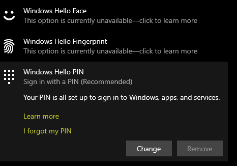 Windows10 ติดตั้งเสร็จ ส่วนของ login ไม่ได้ตั้ง password login อะไรเลย บู๊ตเข้ามาใช้งานตามปรกติ แต่ปัญหาคือ เวลาพักจอเอง ชอบขึ้นให้ใส่ PIN ตามรูป แก้ไขไงครับ ผมก็จำไม่ได้ว่าตั้ง PIN อะไร เ