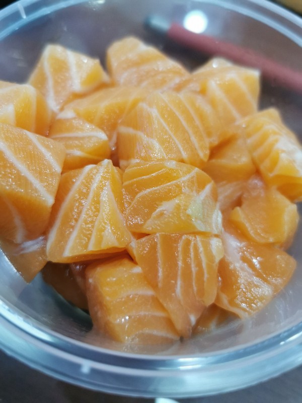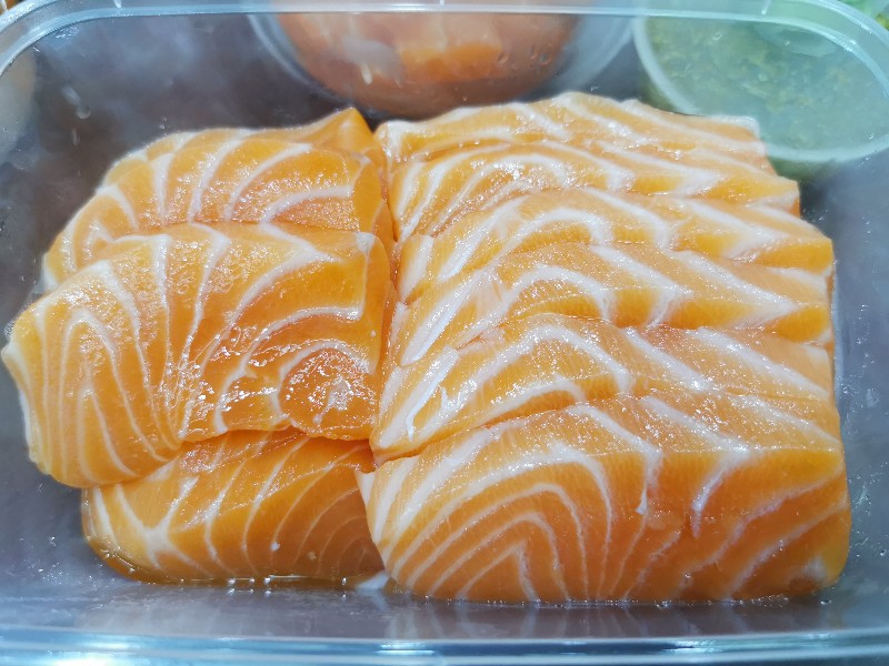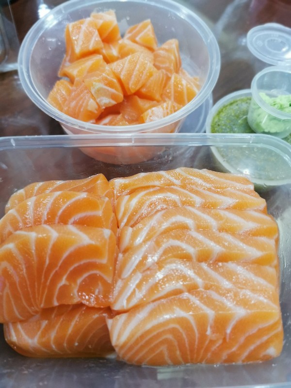 ช่วงนี้แซลมอนซาซิมิ 500กรัมในราคา 459 บาท แถมแซลมอนเต๋าอีก 200 กรัม คือดีย์