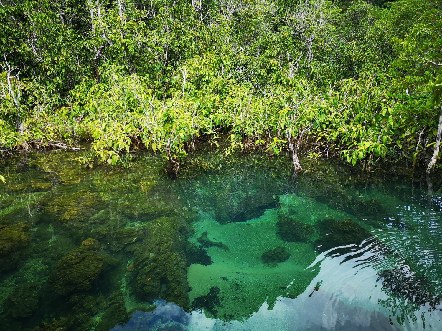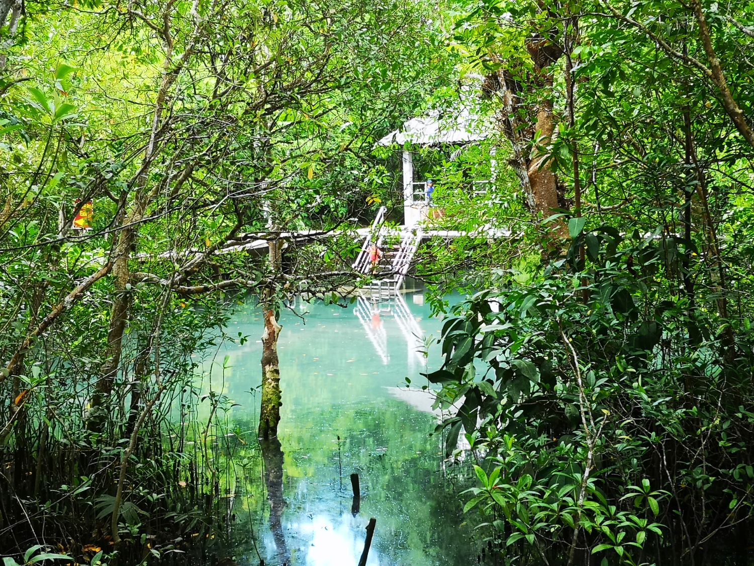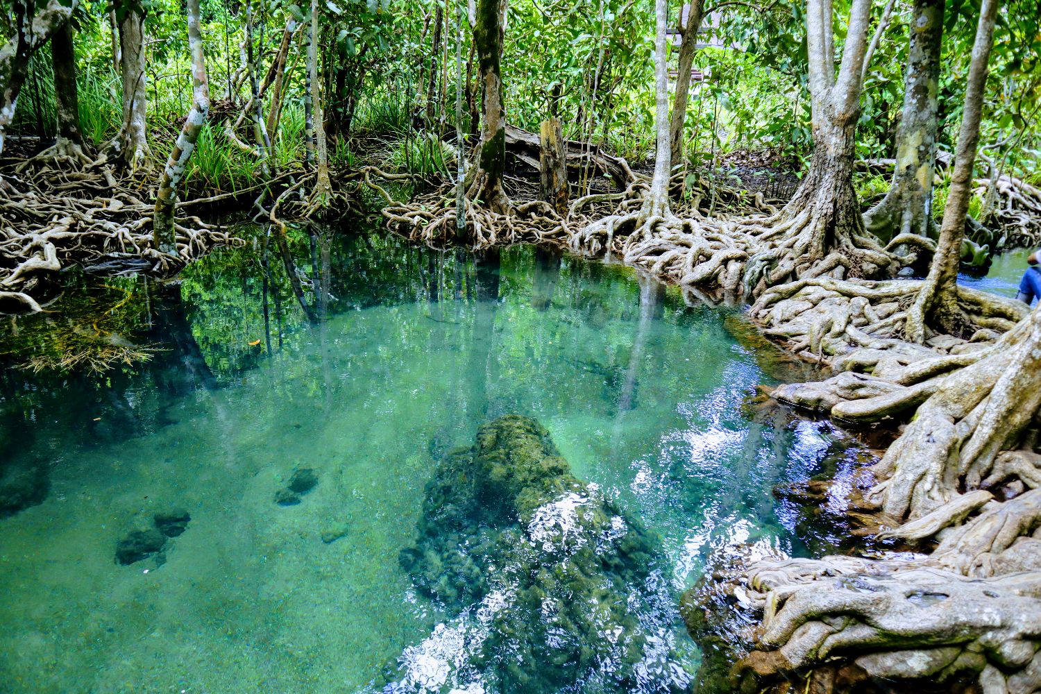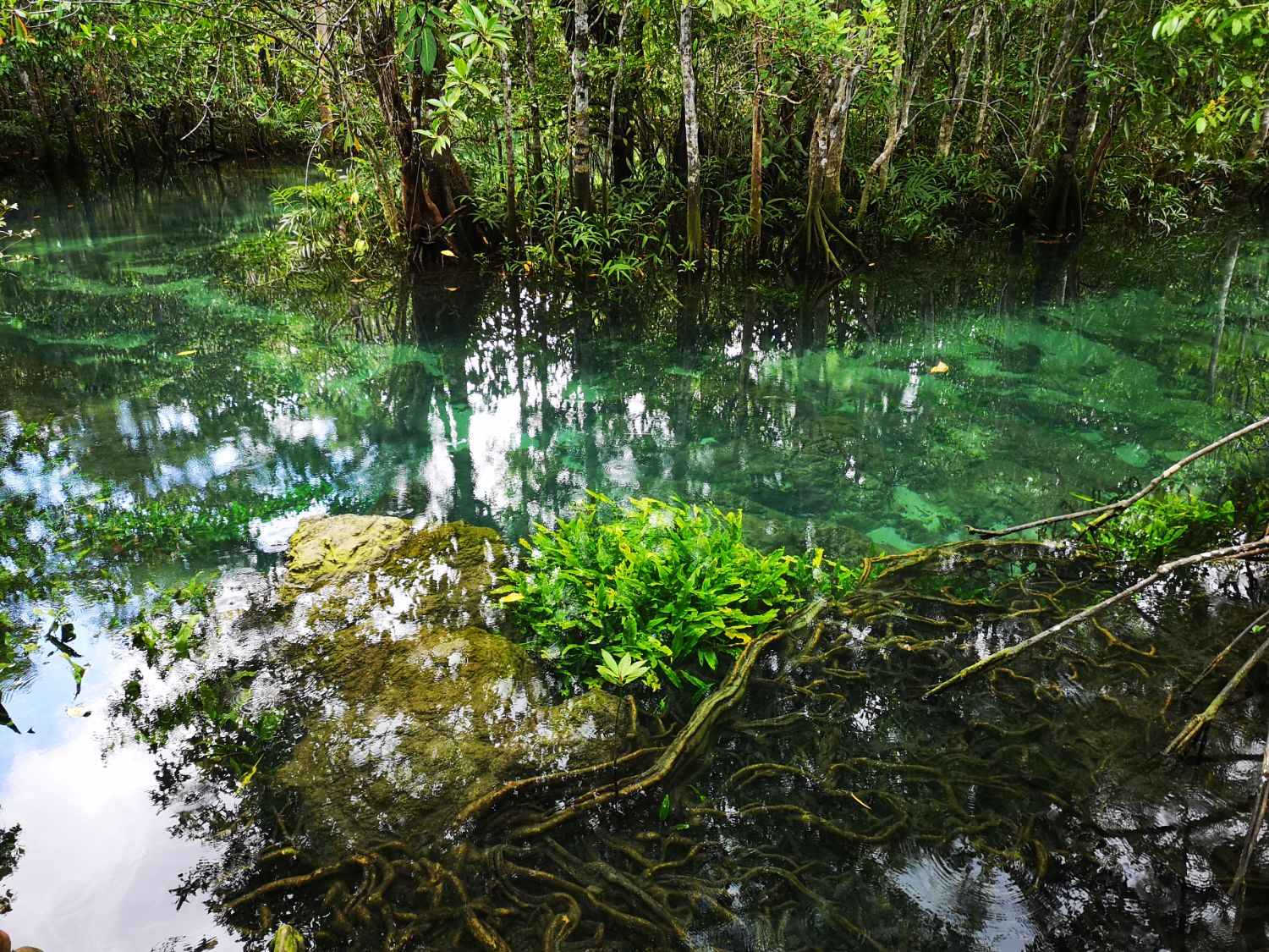 ความใสของน้ำสีเขียวมรกตช่างยั่วยวนให้ผมอดใจไม่ไหวต้องหยิบกล้องถ่ายรูปมาถ่ายความงามของที่นี่เก็บไว้เป็นความทรงจำ แม้ตอนที่ผมมาท้องฟ้าจะอึมครึมเพราะฝนเพิ่งหยุดตกมาไม่นาน จึงไม่มีแสงแดดส่องมาที่ผิวน้ำทั้ง ๆ ที่เป็นเวลาช่วงบ่าย แต่สีน้ำและความใสของน้ำที่นี่ก็ไม่ลดน้อยลงเลย จึงไม่แปลกใจว่าทำไมที่นี่จึงเป็นหนึ่งในแหล่งท่องเที่ยวของประเทศไทยอีกแห่งที่ไม่ควรพลาดชม