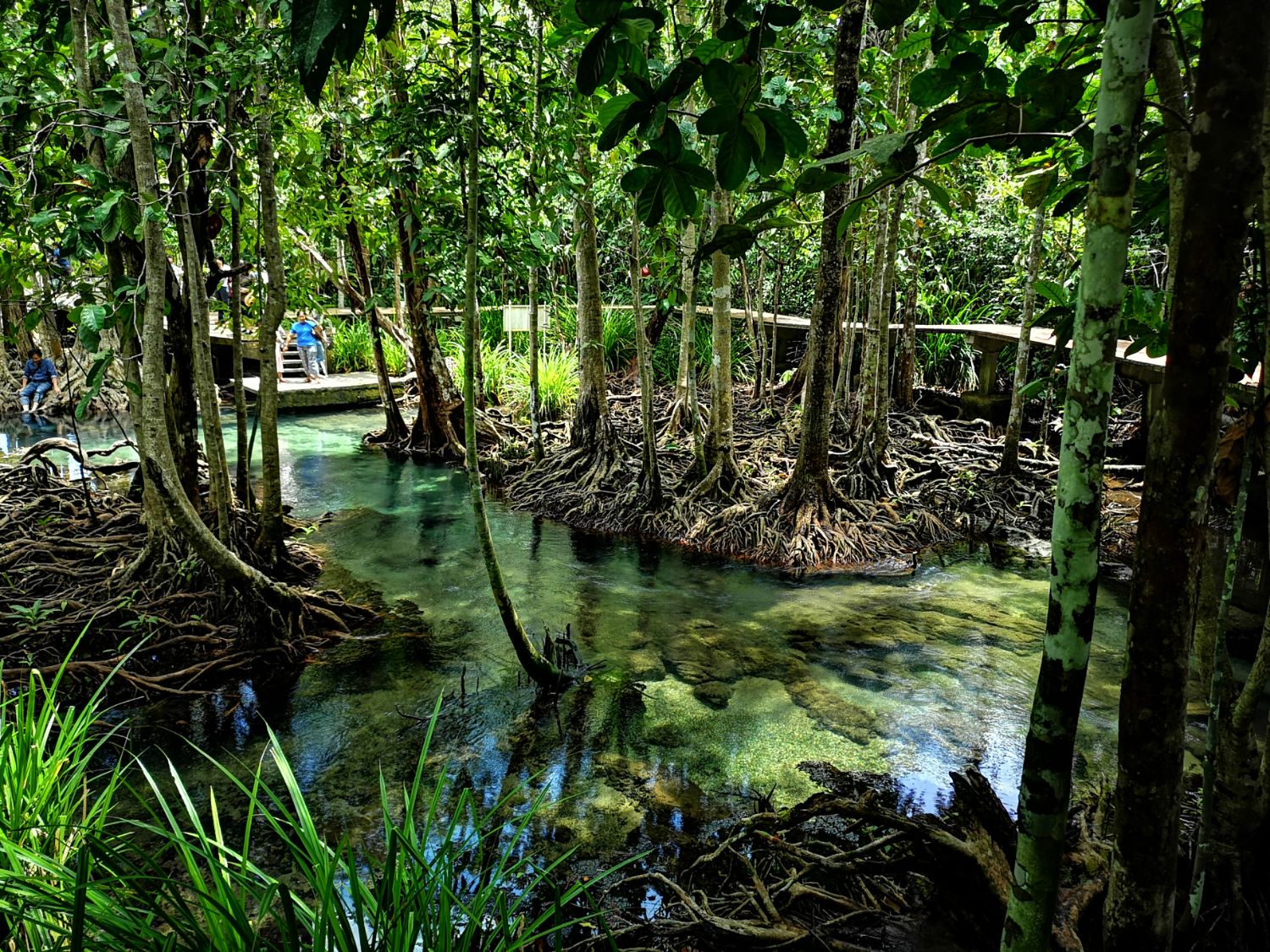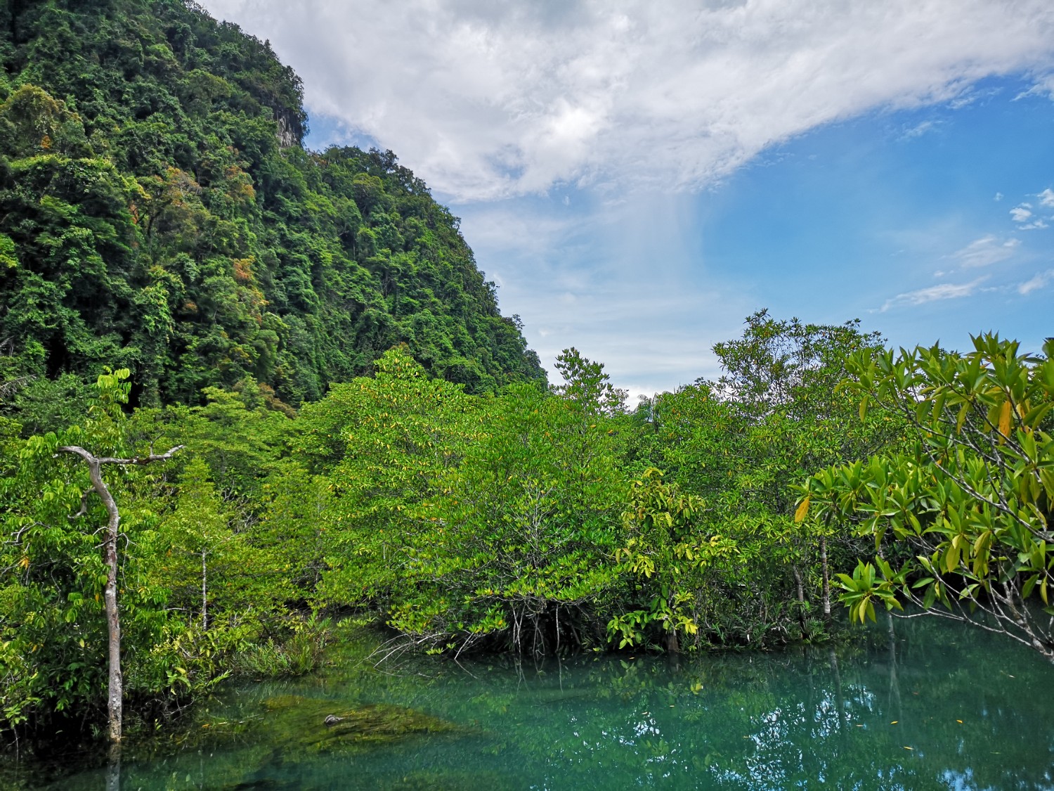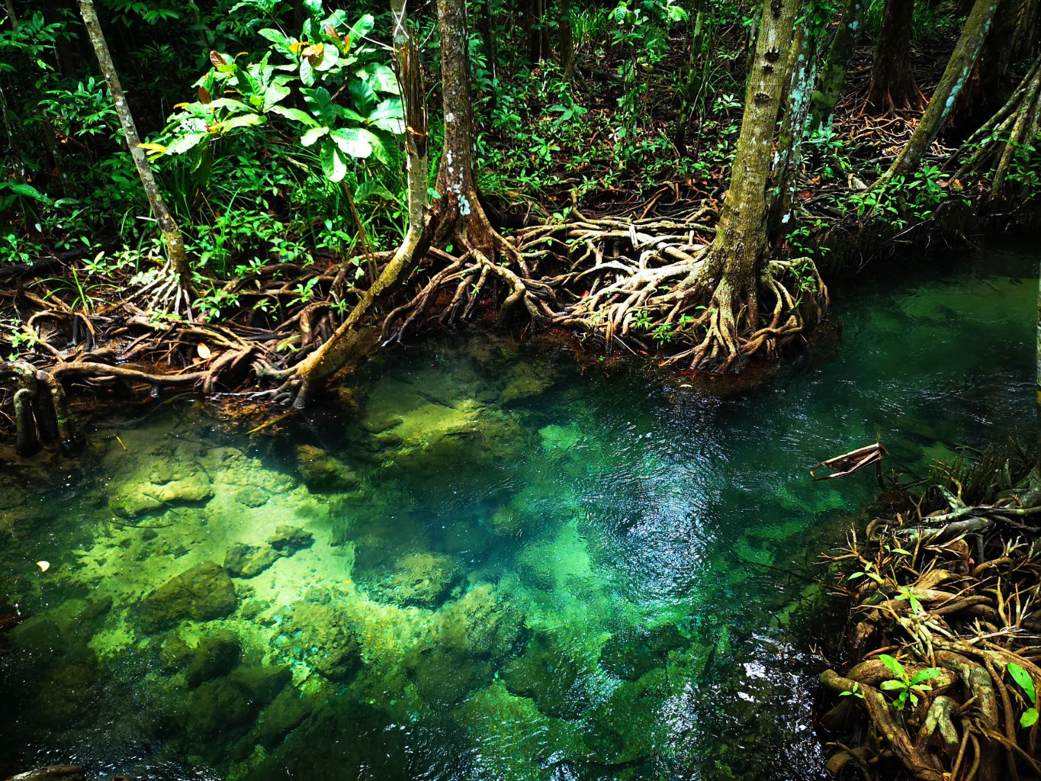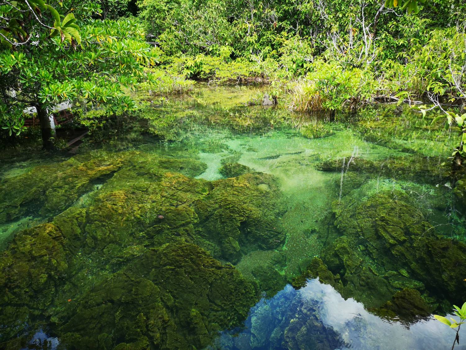 ความใสของน้ำสีเขียวมรกตช่างยั่วยวนให้ผมอดใจไม่ไหวต้องหยิบกล้องถ่ายรูปมาถ่ายความงามของที่นี่เก็บไว้เป็นความทรงจำ แม้ตอนที่ผมมาท้องฟ้าจะอึมครึมเพราะฝนเพิ่งหยุดตกมาไม่นาน จึงไม่มีแสงแดดส่องมาที่ผิวน้ำทั้ง ๆ ที่เป็นเวลาช่วงบ่าย แต่สีน้ำและความใสของน้ำที่นี่ก็ไม่ลดน้อยลงเลย จึงไม่แปลกใจว่าทำไมที่นี่จึงเป็นหนึ่งในแหล่งท่องเที่ยวของประเทศไทยอีกแห่งที่ไม่ควรพลาดชม