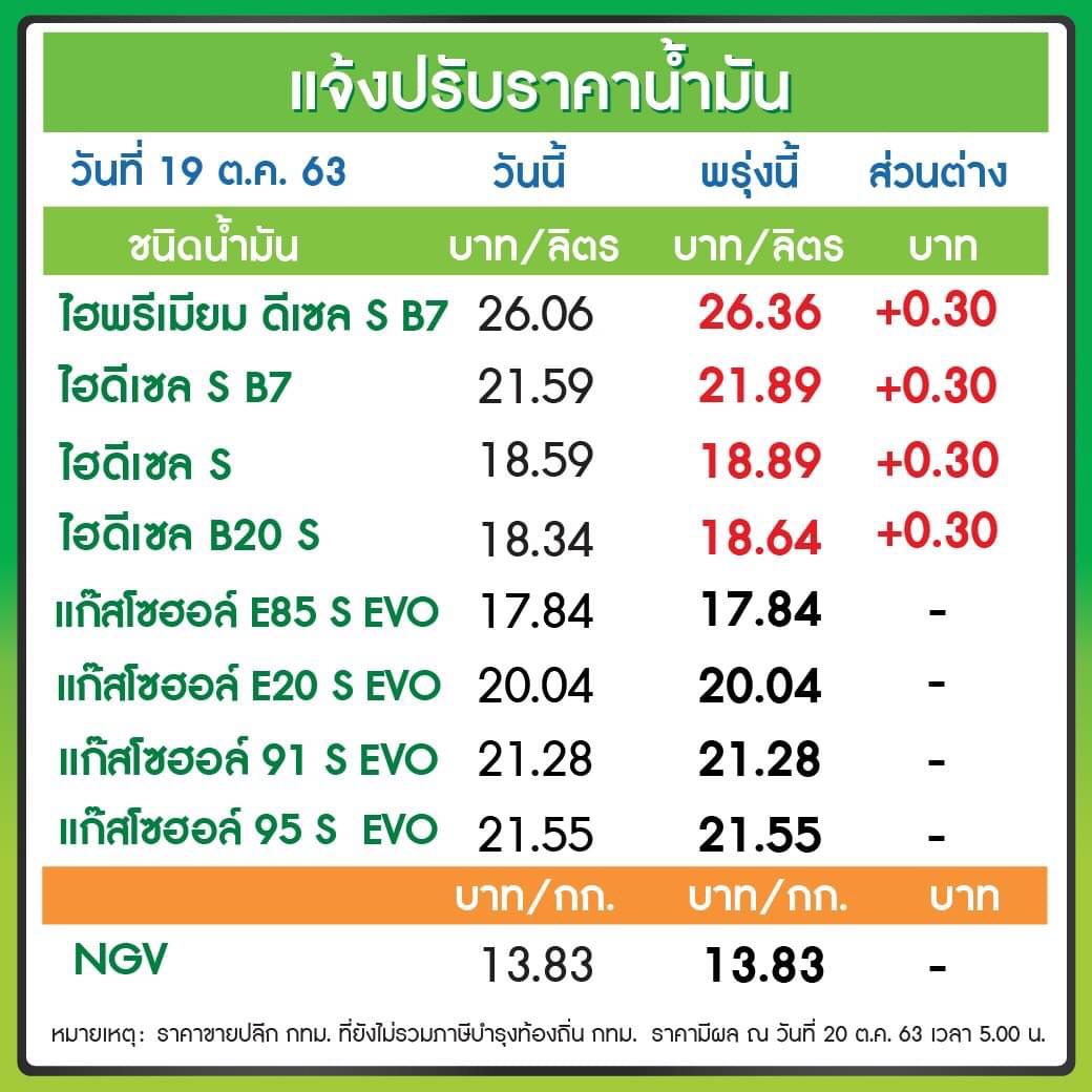แจ้งข่าว พรุ่งนี้ (20/10/2563) ปตท. บางจาก แจ้งปรับขึ้นราคาดีเซลค่ะ