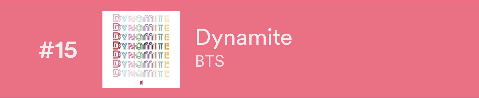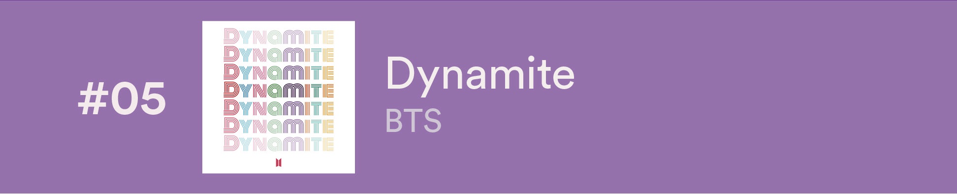 🔸‘Dynamite’ — Spotify 🌎Global: #3 (=) — 3,688,555 plays 🇺🇸US: #18 (=) — 554,787 plays 🇬🇧UK: #33 (=) — 135,761 plays 15 days in Top 3, 58 days in Top 5, 62 consec