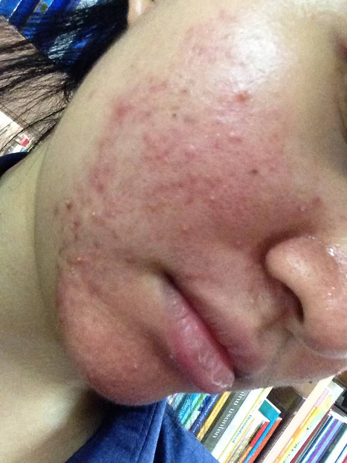 พอเวลาผ่านไป ชีวิตเด็กนักเรียน ม.3 ก็จบลง เราปิดเทอมและเตรียมตัวเข้าสู่ชีวิตม.ปลาย โดยในช่วงที่เราปิดเทอมนั้น หน้าเราจากที่เคยขาวใส ก็เปลี่ยนไปเป็นหน้าสิว พอเราเปิดเทอมมีแต่คนมองเรา ไม่ใช่เพราะเราสวย แต่เป็นเพราะหน้าเราสิวขึ้นเต็มหน้า มีความแดงและบวมมากๆ