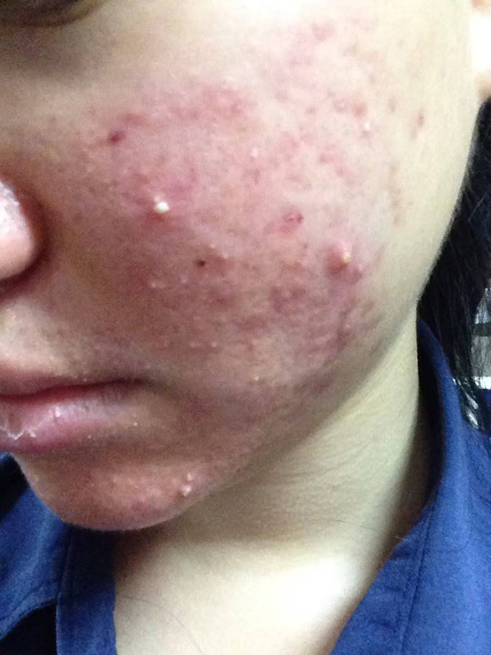1. จากคนที่หน้าใส กลายเป็นหน้าสิว (สิวแพ้สารสเตียรอยด์) และแน่นอนว่าพอเป็นสิว ก็จะเป็นรอยแดง ซึ่งรักษายากมากๆ
