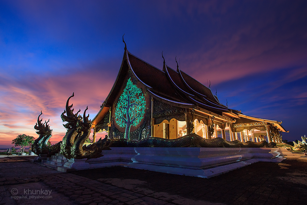 [Spoil] คลิกเพื่อดูข้อความที่ซ่อนไว้วัดสิรินธรวรารามภูพร้าว อยู่ที่ อ.สิริธร จ.อุบลราชธานี อุโบสถมีลักษณะคล้ายกับวัดเชียงทอง เมืองหลวงพระบาง ประเทศลาว เอกลักษณ์ของวัดได้แก่ประติมากรรมต้นกัลปพฤกษ์เรืองแสง โดยจะค่อยๆเรืองแสงสีเขียวหลังพลบค่ำ และยังเป็น Unseen Thailand แห่งใหม่อีกด้วย ในวันที่ผมไปโชคดีได้เจอกับผู้ออกแบบพอดี พี่เค้าบอกว่าได้ไอเดียมาจากภาพยนตร์เรื่อง AVARTAR และเนื่องจากวัดตั้งอยู่บนที่สูงทำให้เป็นจุดชมวิวพระอาทิตย์ตกที่เขื่อนสิรินธร และยังมองเห็นทิวเขาประเทศลาวเพื่อนบ้านได้อีกด้วย