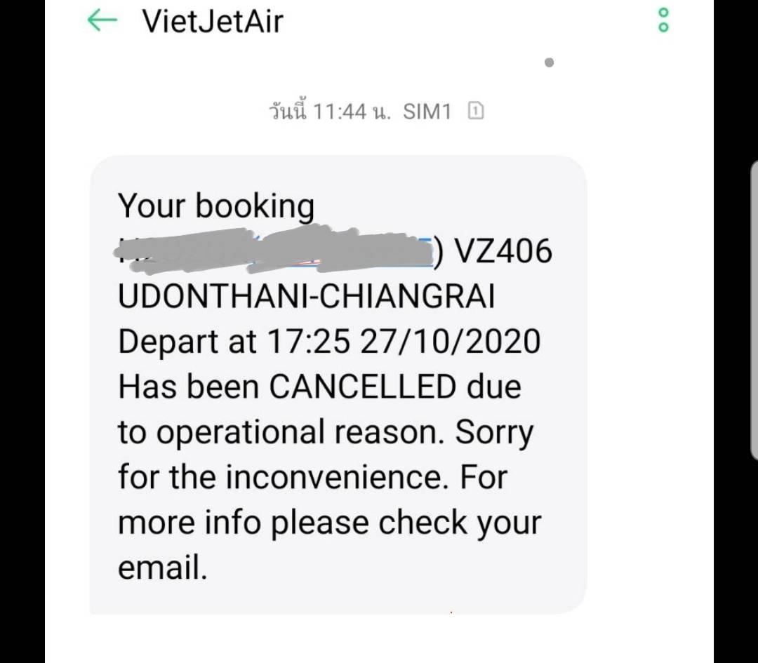 คือจองตั๋วเครื่องบินของ VietJetAir แอร์ไว้ล่วงหน้าแล้วเป็นเดือนๆ เพราะว่าต้องเดินทางไปทำธุระสำคัญมาก อยู่ๆสายการบินส่งข้อความมาบอกว่ายกเลิก แบบนี่เราฟ้องได้ไหมโทษฐานที่ทำให้เราต้องเสียเวลา?