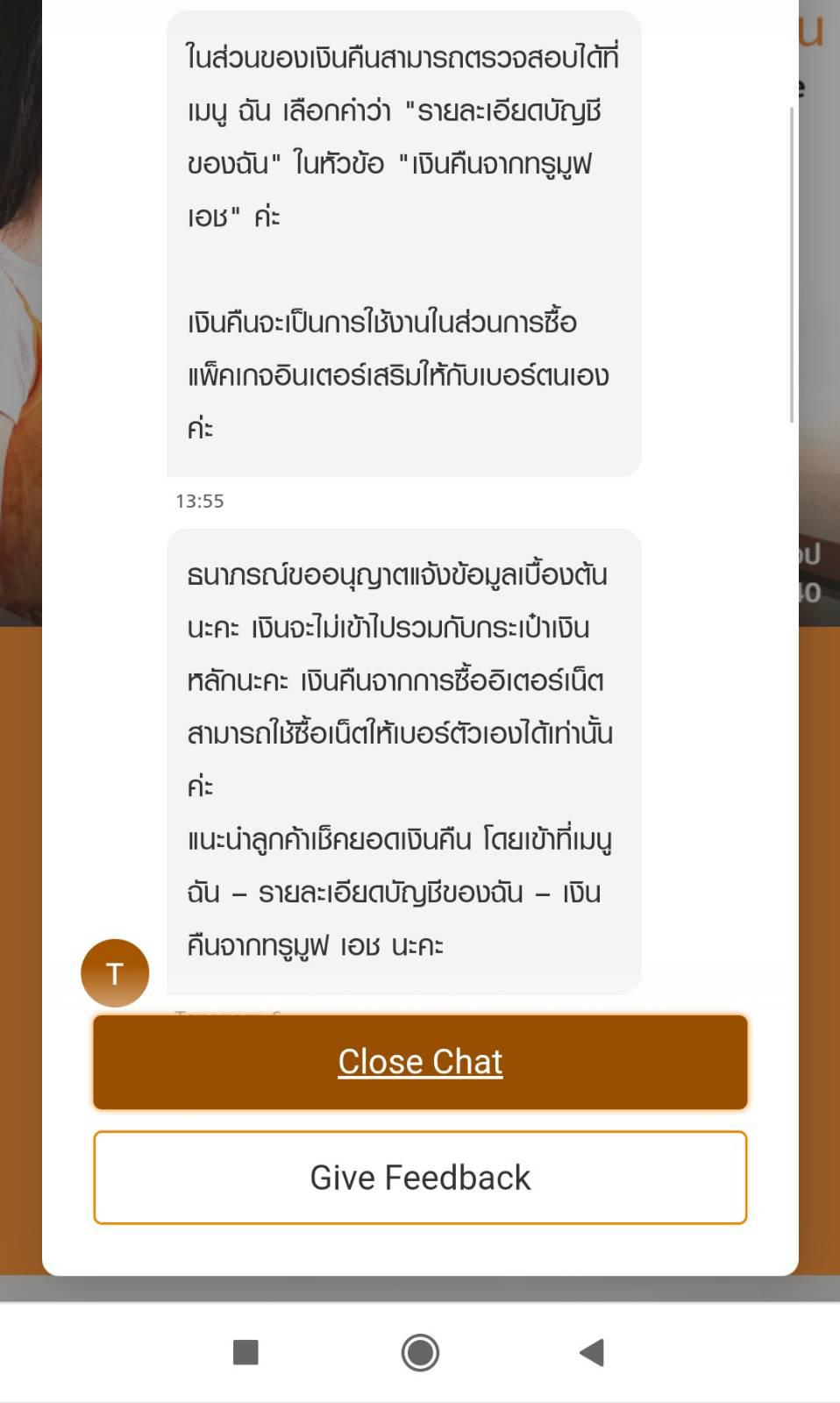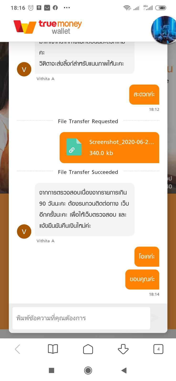 ในวันที่2กรกฎาคม2563 เราได้ไปคุยเรื่องการคืนเงินที่ศูนย์ทรูแต่ทางนั้นบอกว่าให้คุยทางหน้าเว็บไซต์เราจึงได้มาคุยทางเว็บไซต์แทน พนักงานได้มีการสอบถามเบอร์โทรเพื่อติดตามผลการคืนเงิน