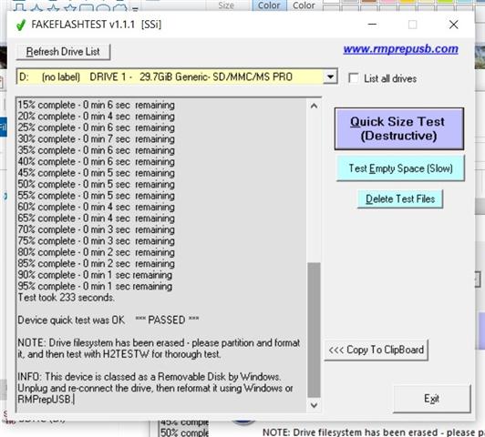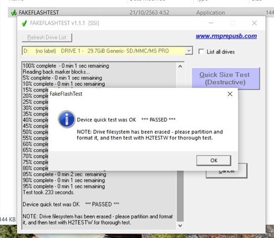 เทสต์กับ fakeflashdrive เทสต์ผ่าน ดังรูป ครับ
