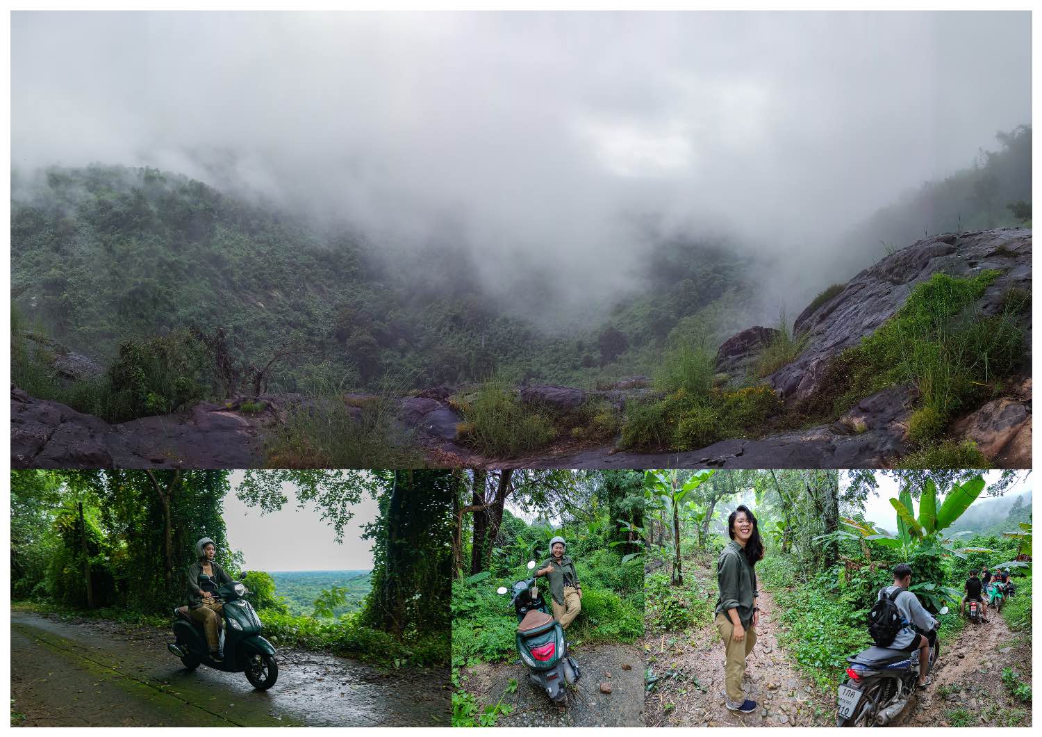 แลกกับบรรยากาศที่ได้นับว่าคุ้มครับ เพราะฝนเพิ่งตกไป ด้านหลังเป็นวิวภูเขา มีหมอกลอยอ่อนๆ