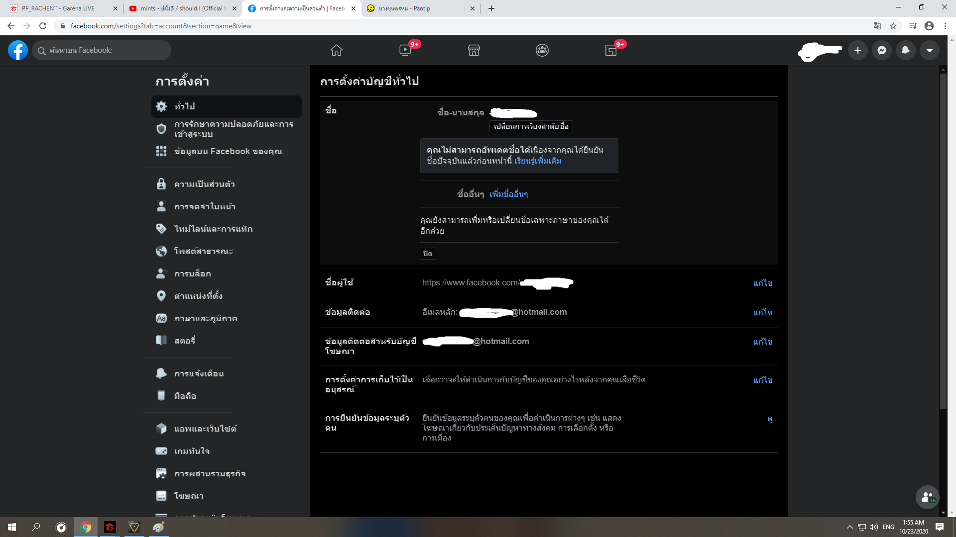จะเปลี่ยนชื่อ Facebook กลับยังไงคะ เราเปลี่ยนไม่ได้เลย มันขึ้นแบบนี้???