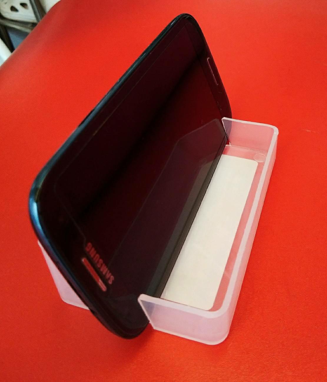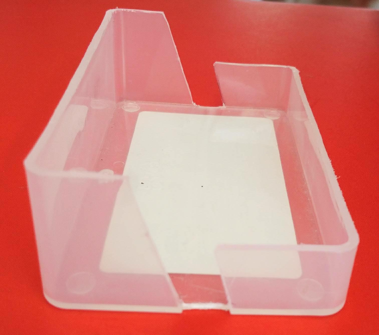 เป็นพลาสติคอ่อน(แต่หนาและแข็งพอสมควร) จัดการตัดฝาออก ลองเอาโทรศัพท์ทาบดูเพื่อหาตำแหน่งแล้วใช้คัตเตอร์ตัด ตกแต่งลบรอยคมออก เสร็จแล้วครับ