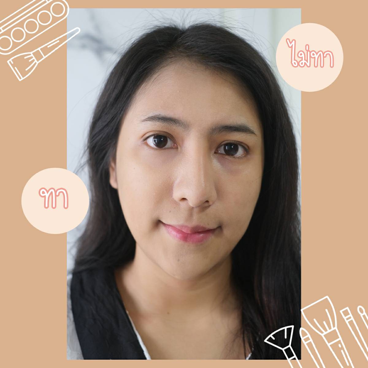 เปรียบเทียบกันให้ดูเลยว่า ข้างที่เบลล์กับไม่ทา ผิวหน้าดูต่างกันมากกกก ข้างที่หน้าหน้าเรียบเนียน กริ๊บบ ! แบบผิวสวย สุขภาพดีมาก อีกข้างที่ไม่ได้ทาจะออกมันๆ รอบตาคืออ่อนล้าชัดเจนมาก ดูโทรมหมองคล้ำสุดๆ