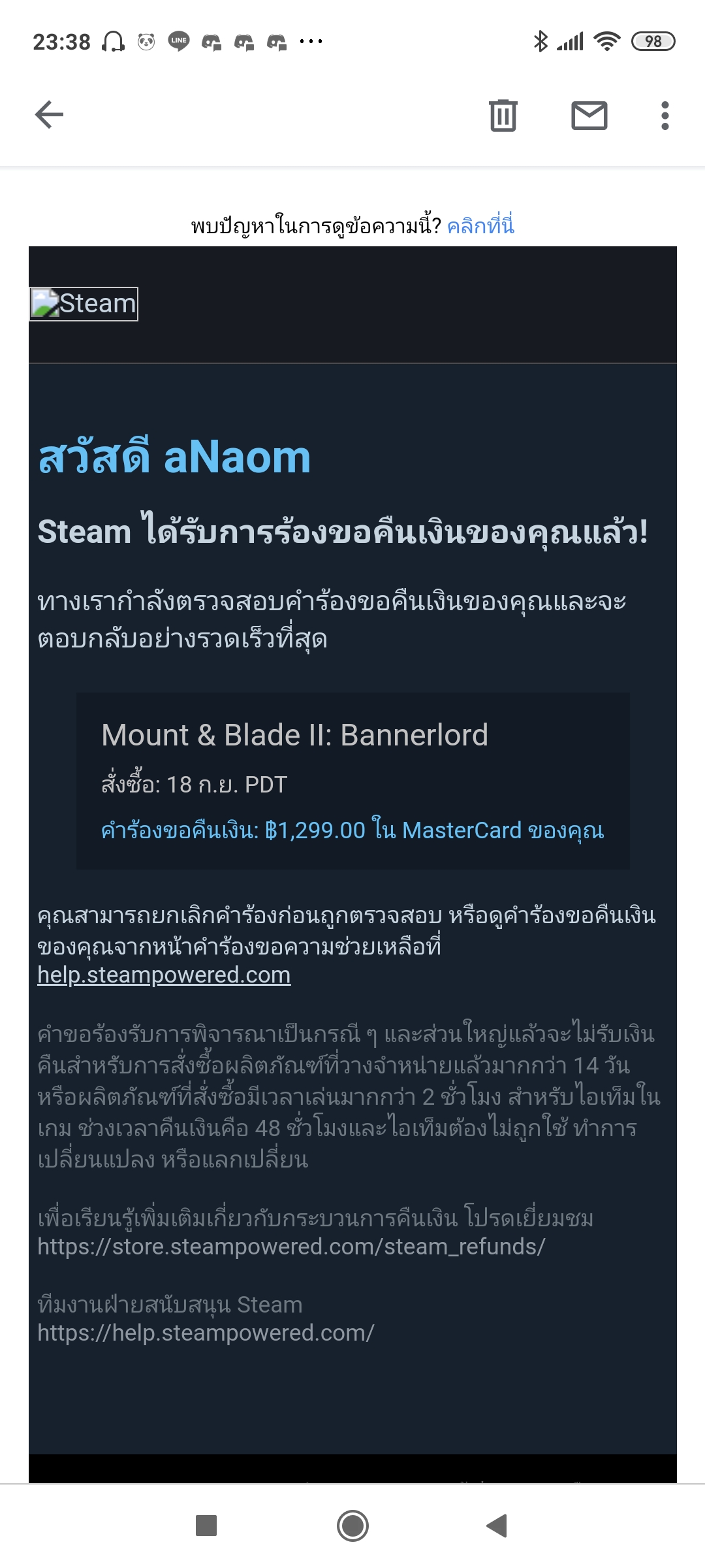ขอ refund เงินจากสตีมมาเดือนกว่าละครับเงินยังไม่เข้าเลย truemoney