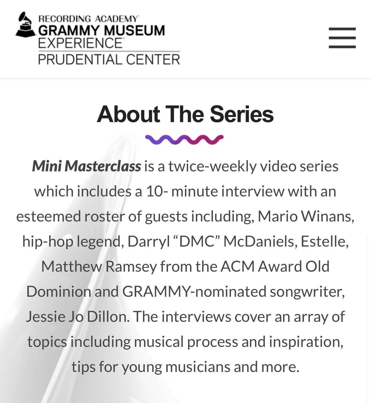 BTS จะถ่ายทำ Mini Masterclass โดย GRAMMY MUSEUM @PruCenter Mini Masterclass เป็นซีรี่ส์บทสัมภาษณ์คนดังในวงการเพลงความยาวประมาณ 10 นาที ออกทุกวันอังคาร/ศุกร์ทาง YouTube ชาแนล Prudential Center หัวข้อ