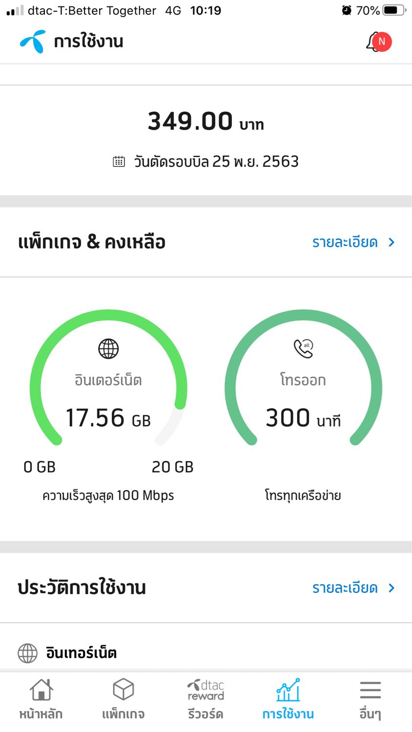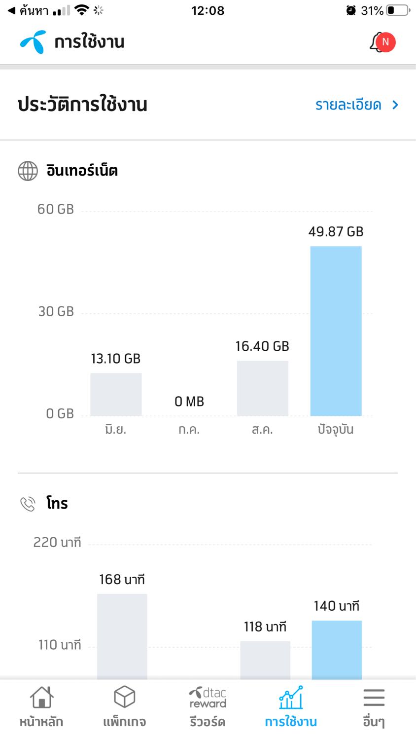 การใช้งานดาต้าช่วงเดือนที่ผ่านมา