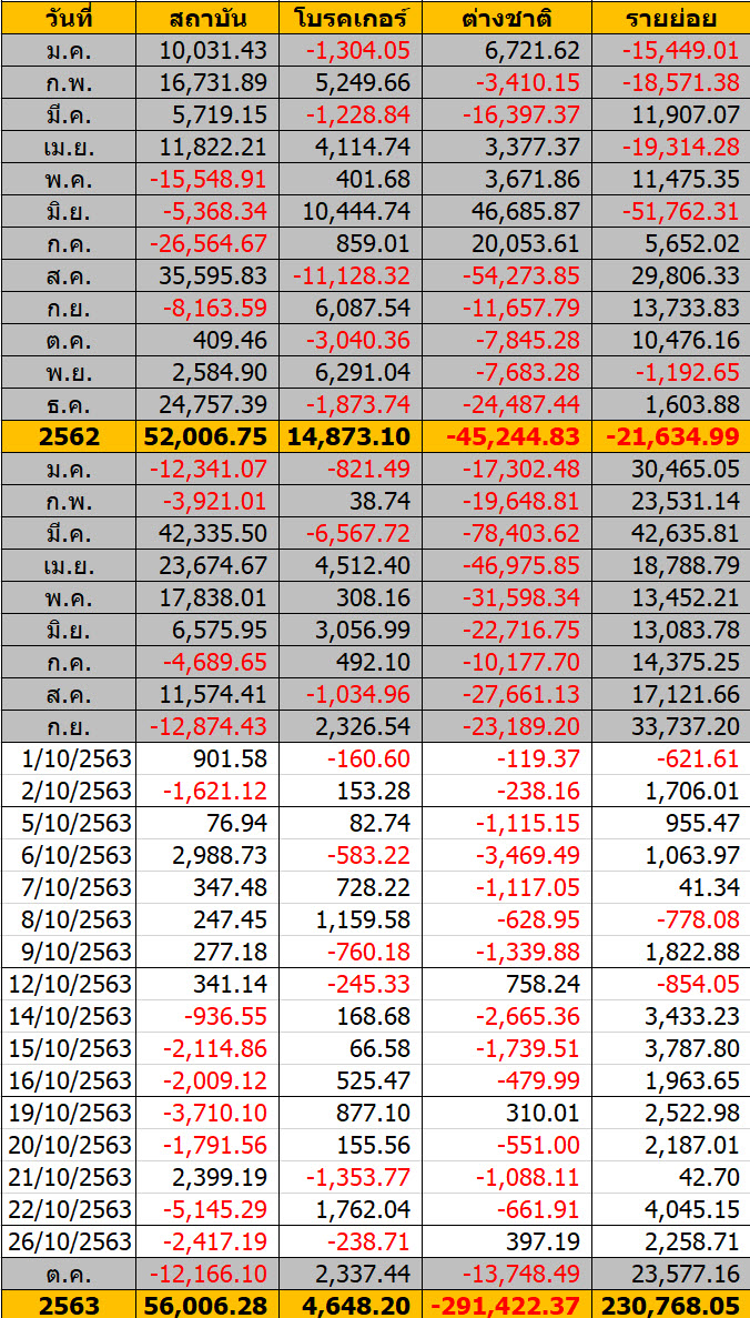 Sinthorn Summary 26/10/2563 : ต่างชาติซื้อสุทธิ 397.19 ลบ.