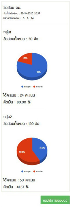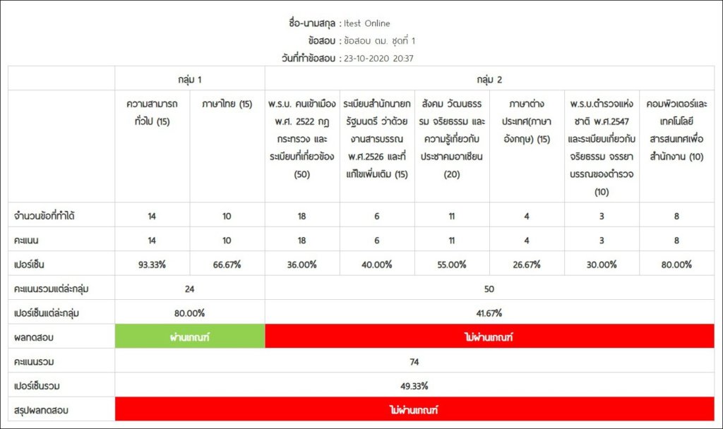 ***ต้องผ่านเกณฑ์ 60% ทั้ง 2 ส่วน คือ ต้องได้คะแนนวิชาส่วนที่ 1 [ ตามข้อ 1 และข้อ 2 ] รวมกันไม่น้อยกว่า 60% (18 ข้อ) และต้องได้คะแนนวิชาส่วนที่ 2 [ ตามข้อ 3 ถึงข้อ 8 ] รวมกันไม่น้อยกว่า 60% (72 ข้อ) จึงจะถือว่าสอบผ่าน***
