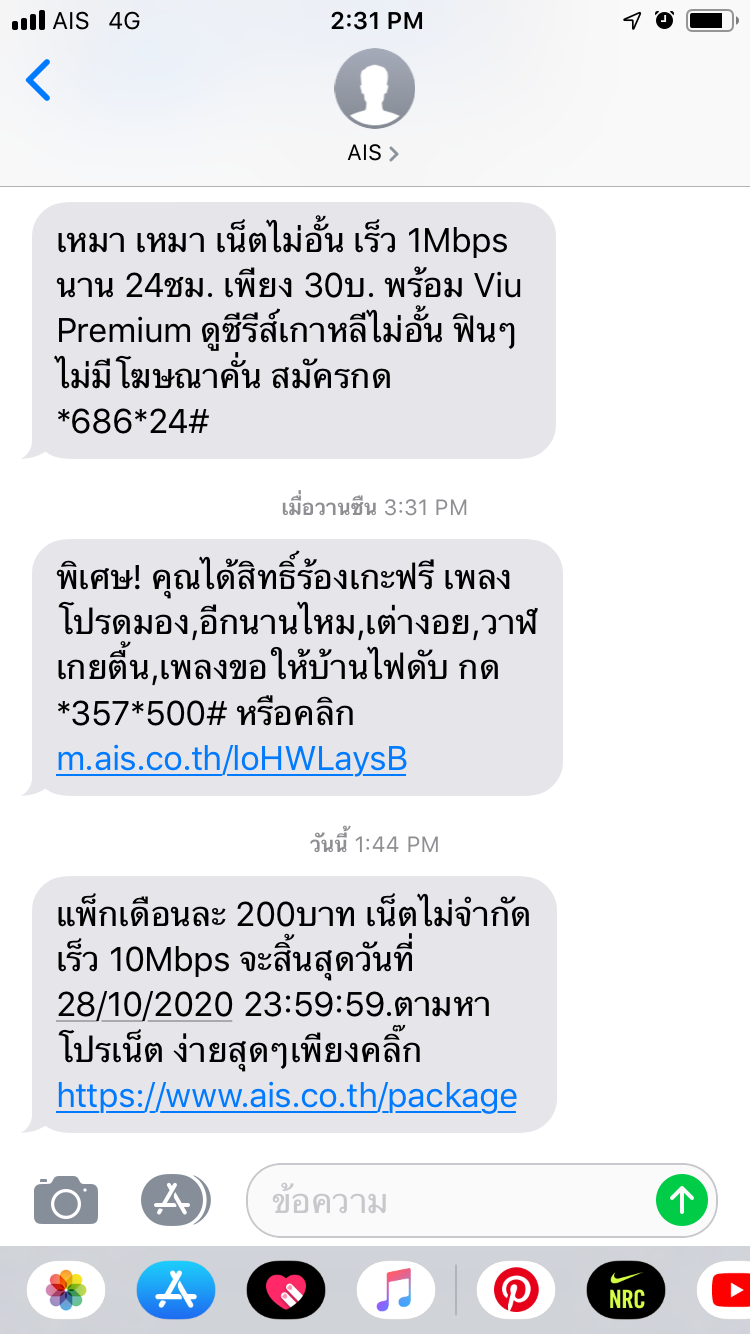 ผมสมัครใช้ แพ็คเกจ net 10 mbps unlimit ไว้ตอนเดือน พ.ย. 2562 ใช้เดือนเดียวแล้วก็ไม่เติมเงินอีกเลย และไม่ได้เติมเงินมา 3 เดือนแล้ว ซึ่งระบบก็ส่ง sms มาเตือนให้เติมเงินทุกวันเลย ตอนนี้ผมจะกลับมาใช้แล้ว