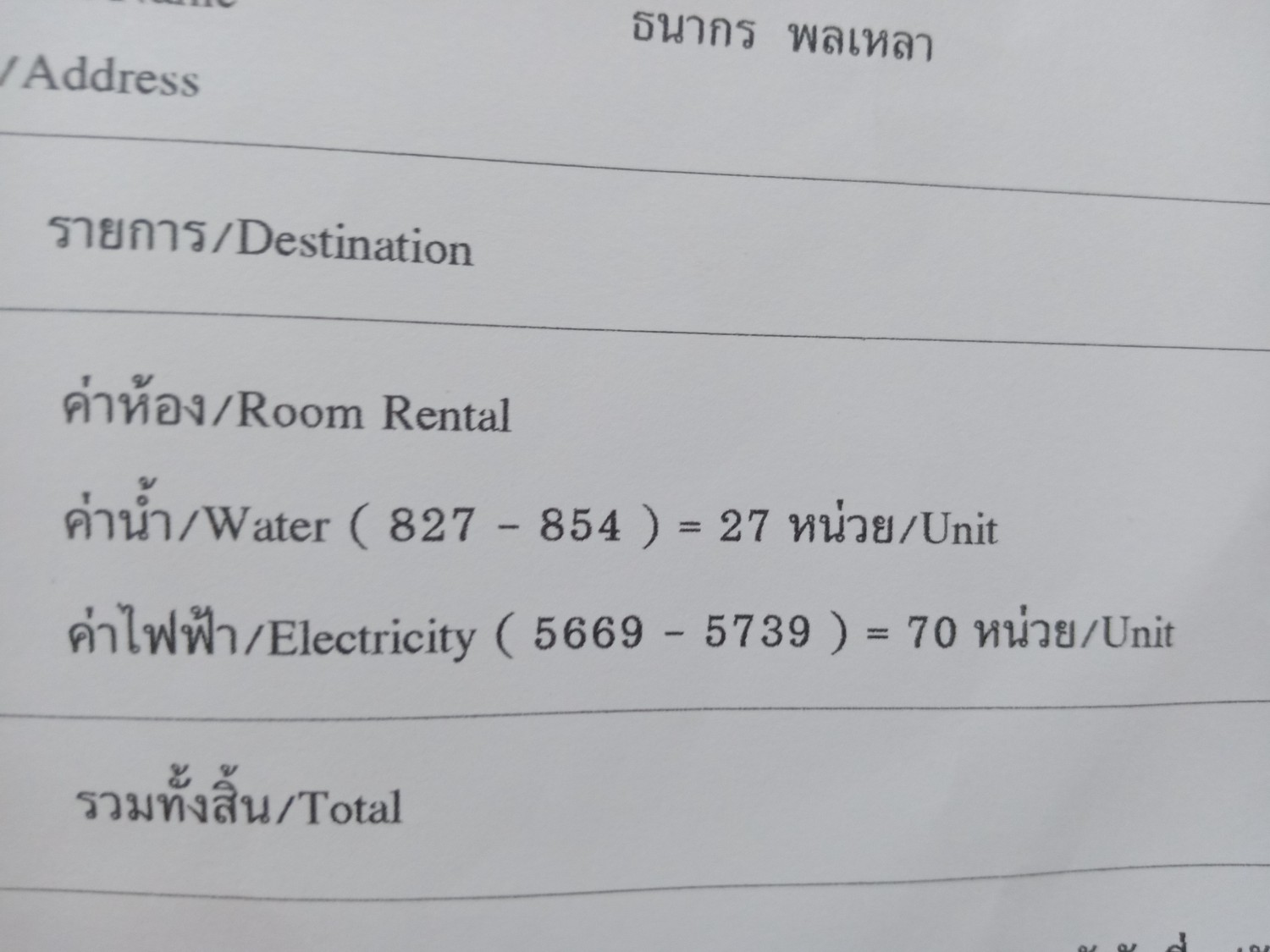 ปล.  น้ำหน่วยละ 20 บาท ไฟ 7 บาท