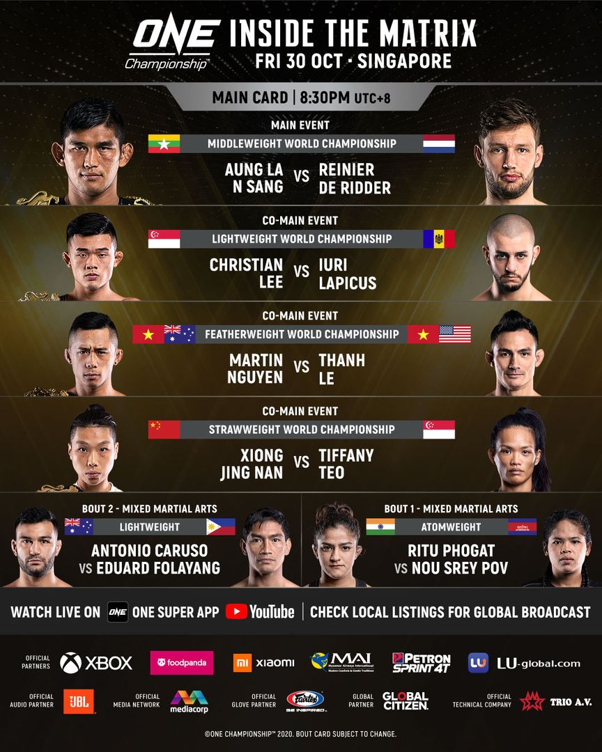 การเดิมพันเข็มขัดแชมป์โลกครั้งใหม่ของ มาร์ติน ในวัย 31 ปี ด้วยสถิติชนะ 13 แพ้ 3 ศึกนี้ไม่ง่าย เพราะผู้ท้าชิงร่วมสายเลือดเวียดนาม “ธานฮ์ เล” วัย 35 ปี พกความมั่นใจมาเต็มร้อยด้วยสถิติชนะ 11 แพ้ 2 โดยไม่เคยแพ้ใคร 3 ไฟต์ต่อเนื่องใน วัน แชมเปียนชิพ จึงทำให้เขาก้าวกระโดดขึ้นมาท้าทายบัลลังก์แชมป์โลกได้อย่างรวดเร็ว