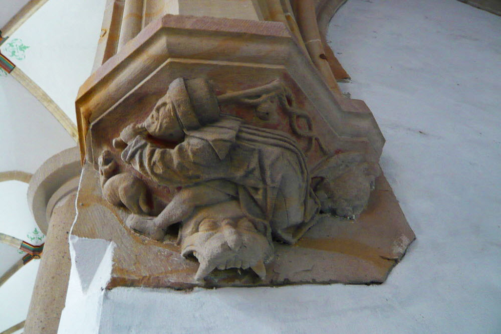 รูปปั้น dog whipper หรือ hondenslager ใน Grote Kerk, Haarlem