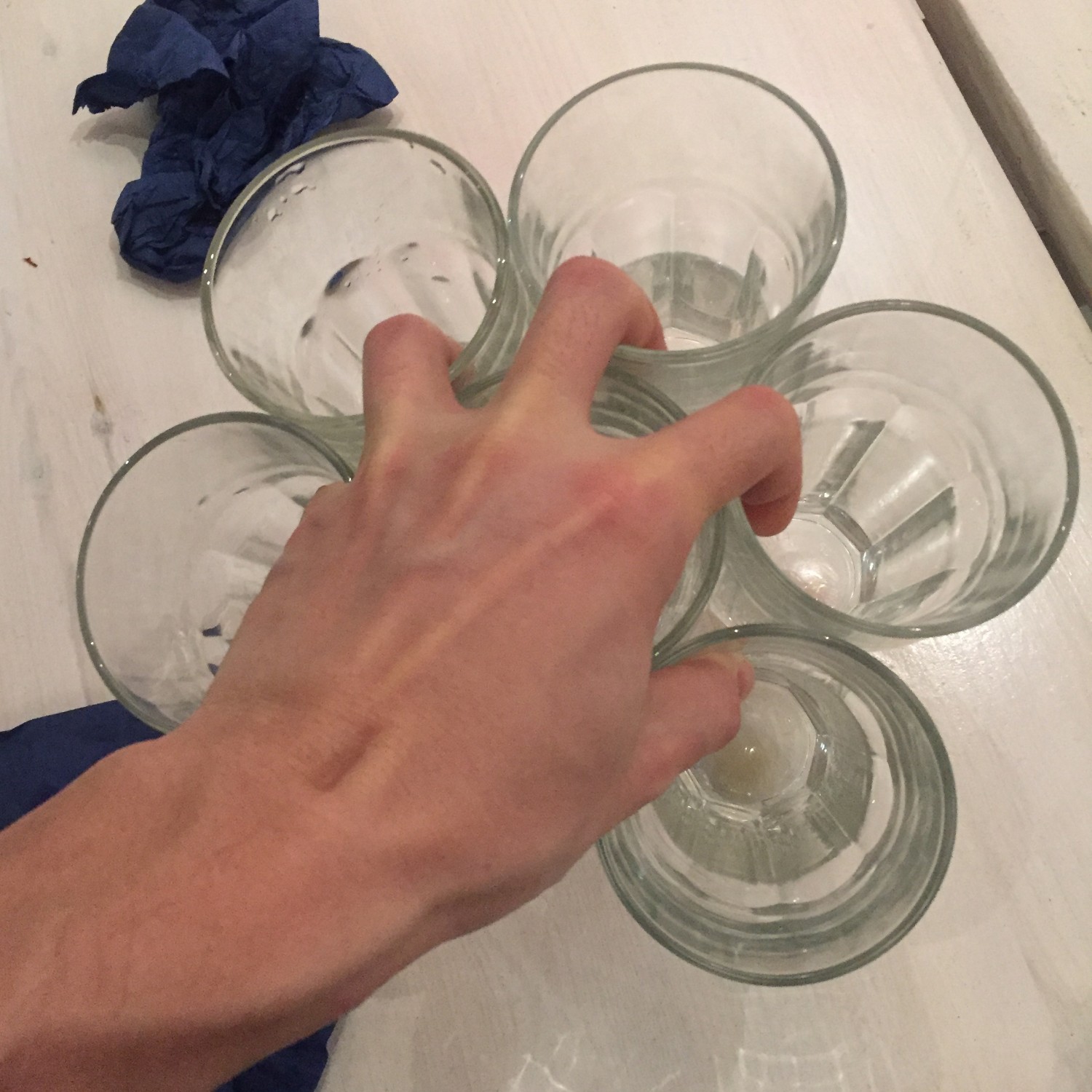 “ถาดฉันเล็กไป ไม่พอสำหรับแก้วทั้งหมดนี้น่ะ” ผมบอก