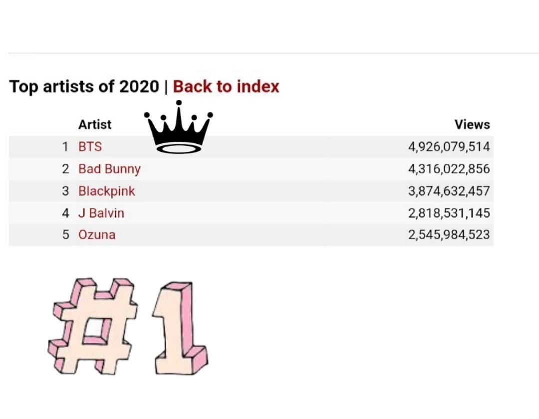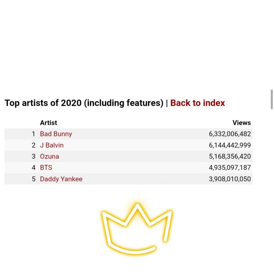 🏆 BTS อยู่อันดับ 4 บน YouTube Top Artists of 2020 (including features)