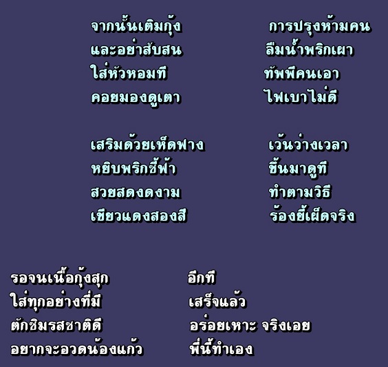 เนื้อหา อ่านแล้วชวนหิว และบทกวี ก็มาหลากหลาย เหมือนการปรุงอาหารเลย