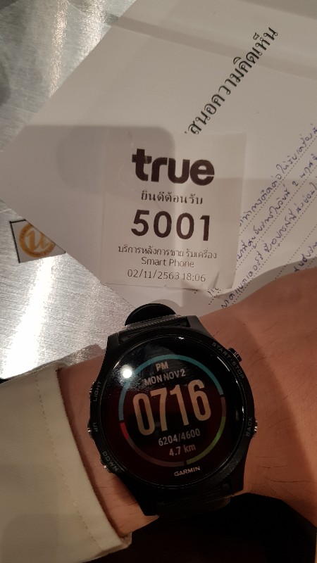 รับบัตรคิวตอน 18:06 นั่งรอไปประมาณเกือบ 40 นาทีจนเจ้าหน้าที่เรียกคิว เมื่อนั่งที่เค้าท์เตอร์ ช่างไปหาเครื่องที่ส่งซ่อมมา สรุปว่าน่าจะซ่อมไม่ได้เลยส่งเครื่องใหม่มาให้แทน ด้วยความอยากรู้ว่าใช้งานได้ไหมเลยแกะเครื่องเพื่อจะใส่ซิม ปรากฏว่า แบตเตอร์นี่หาย....