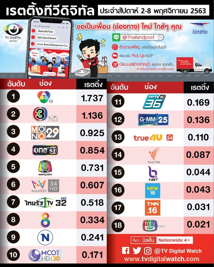 🔎 เรตติ้งประจำสัปดาห์ 26 ตุลาคม - 1 พฤศจิกายายน 2563