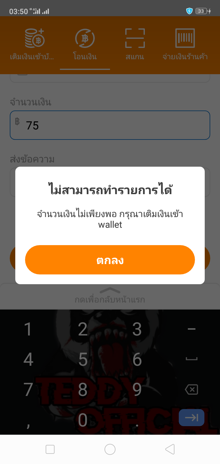 ทำไมผมโอนเงินไม่ได้คับ (ทรูวอเลท) ทั้งๆๆผมมีเงินอยู่ในวอเลท พอผมกดโอน มันบอกเงินไม่เพียงพออะคับ ใครรู้ช่วยบอกทีครับ