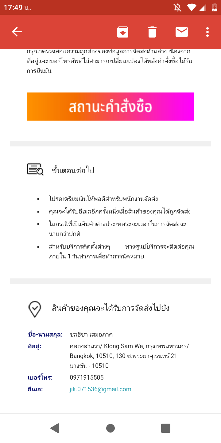 สถานะก็ชำระเงินแล้ว 1 บาท และ ก็กำลังดำเนินการจัดส่ง เออใช่ชื่อรอค่ะๆๆ
